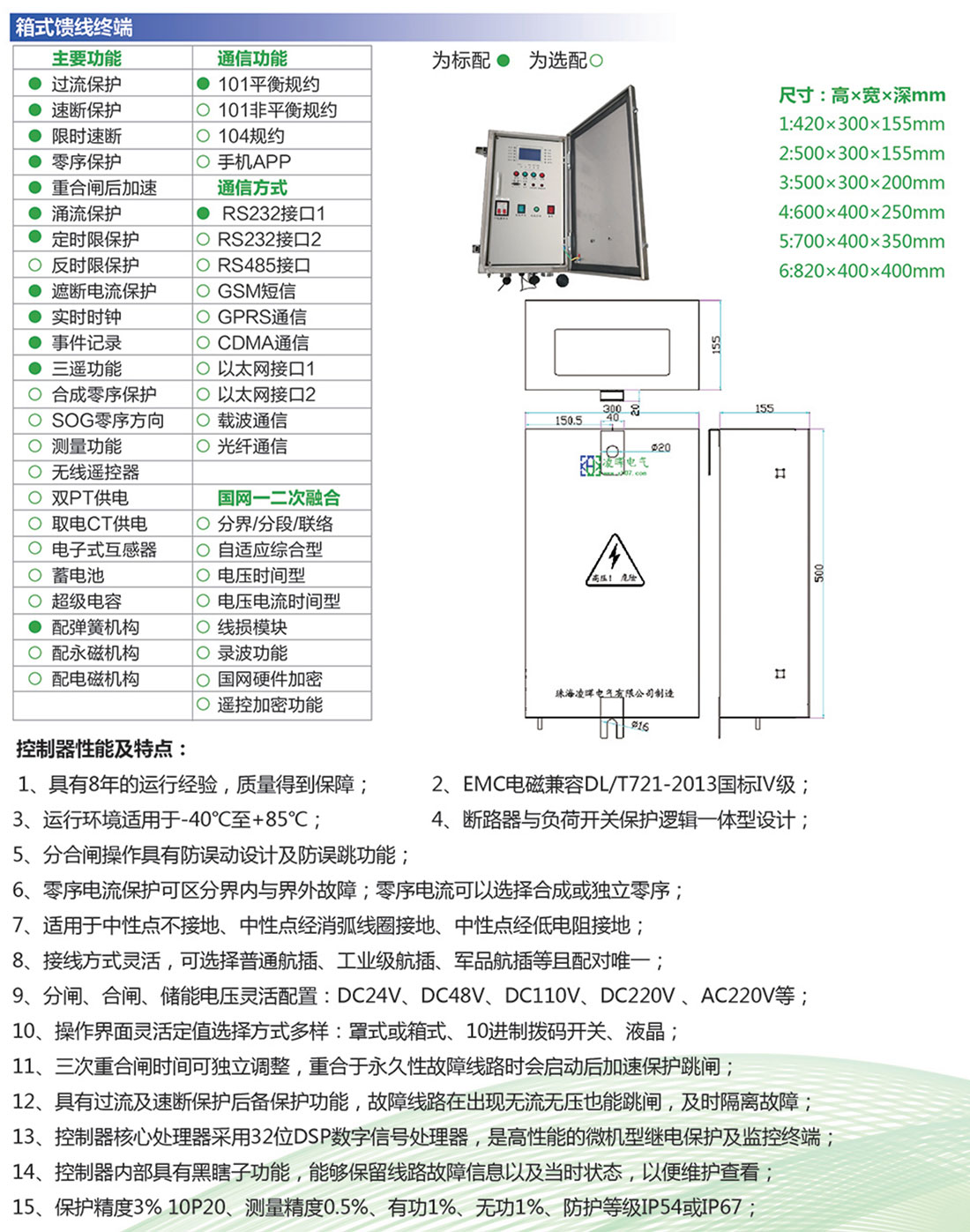 3、選配SOG零序方向保護功能;