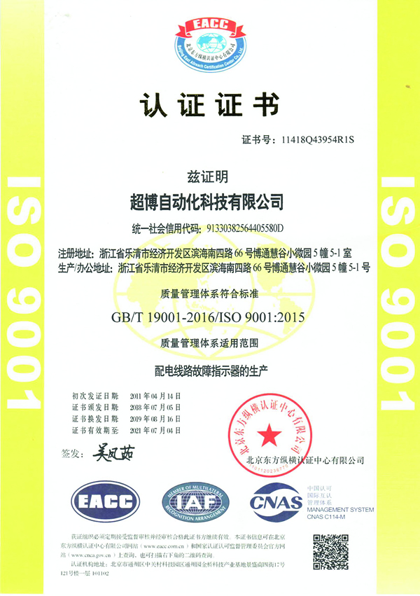 電力自動化產(chǎn)品型式檢驗合格注冊備案證書