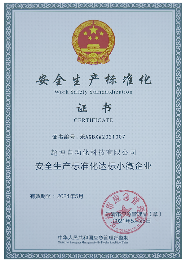 安全生產(chǎn)標準化證書